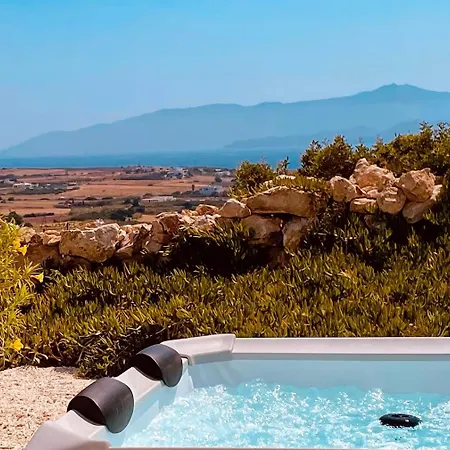 Spiti Su In Paros - Naousa Con Vista Drios villa ligt op circa 15-minuten rijafstand van Lefkés en nodigt gasten uit om te ontspannen op een terras.
